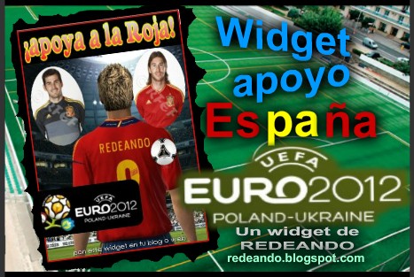 Con motivo de la proxima Eurocopa de futbol, se me ha ocurrido crear un widget o gadget para animar a la seleccion española. Dicho y hecho, me he puesto 'manos a la obra' y, editando unas imagenes por alli, un poco de Javascript y otro tanto de CSS3, aqui lo teneis. Como veis, el diseño tiene movimiento, aparecen 8 jugadores de la plantilla con la indumentaria que llevaran en el campeonato y el balon oficial. Si os gusta y quereis animar a 'la Roja', podeis ponerlo en vuestro blog o web tan solo copiando el codigo de abajo y añadiendolo donde querais mostrarlo. ¡Pasadlo! Widget Codigo
